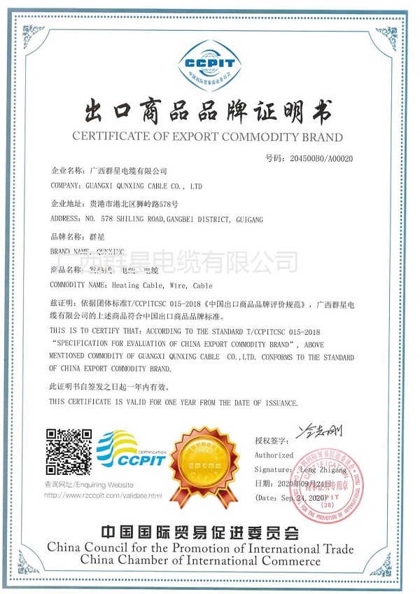 出口商品品牌認證書